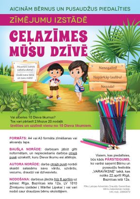 līdz 8.aprīlim uz adresi: Rīga, Baznīcas iela 12a, LV 1010 Zīmējumu izstādei (Mārītei Lipskai) vai vari nodot caur draudzes bērnu skolotājiem.