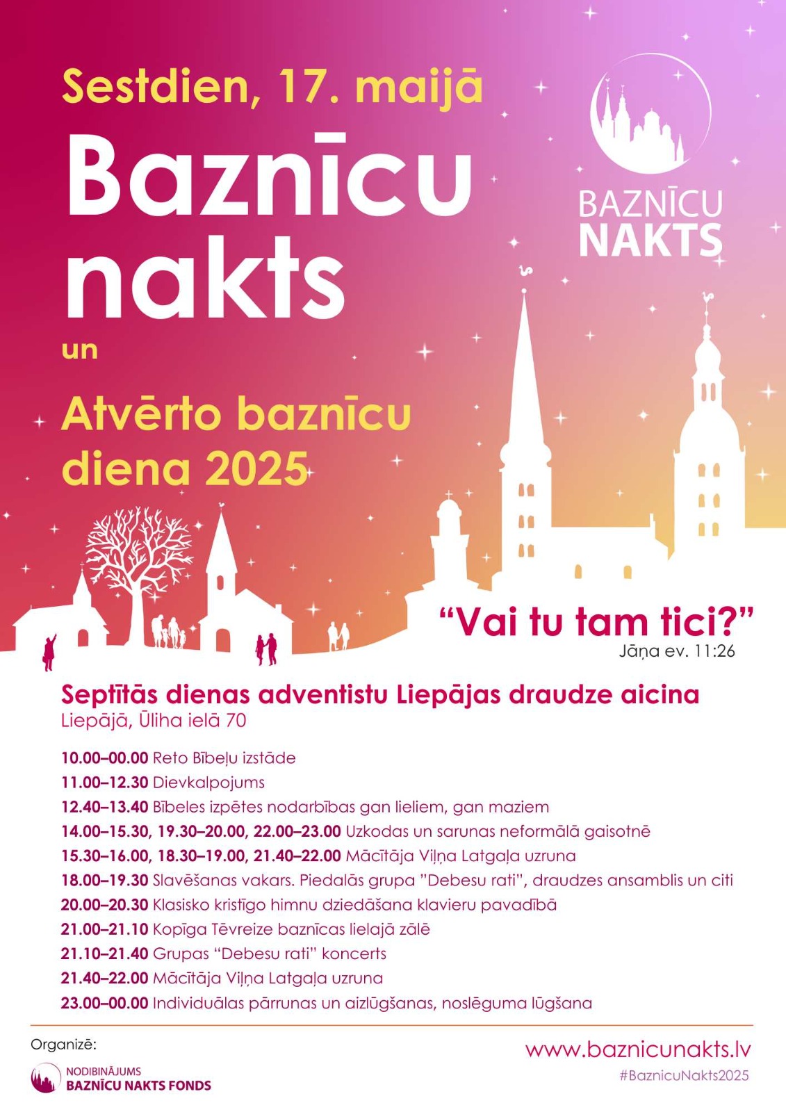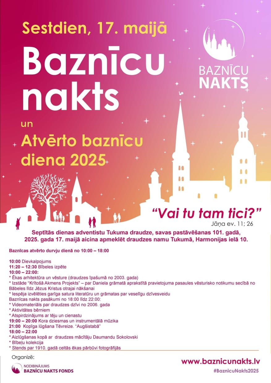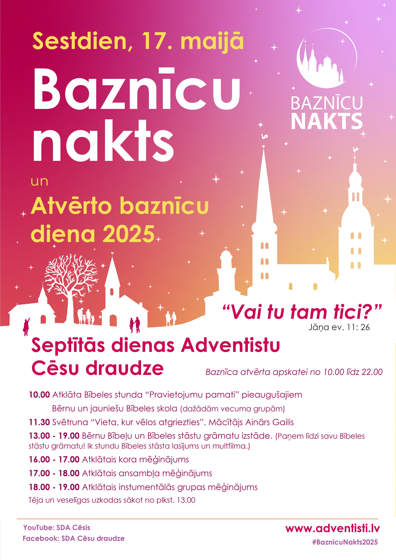 Arī šogad Baznīcu naktī un Atvērto baznīcu dienas ietvaros vairākas Septītās dienas adventistu draudzes ir sagatavojušas programmu ikvienam.