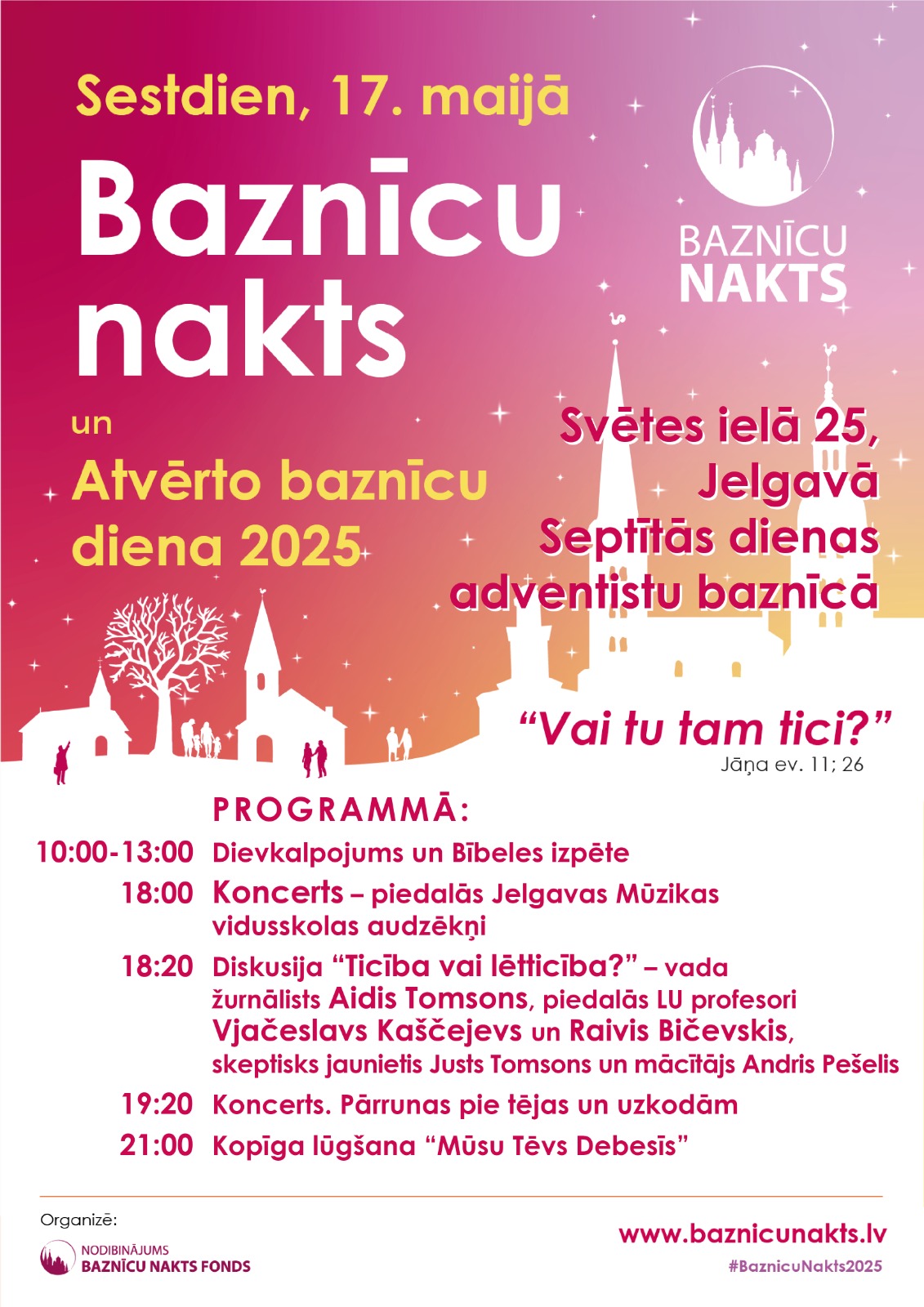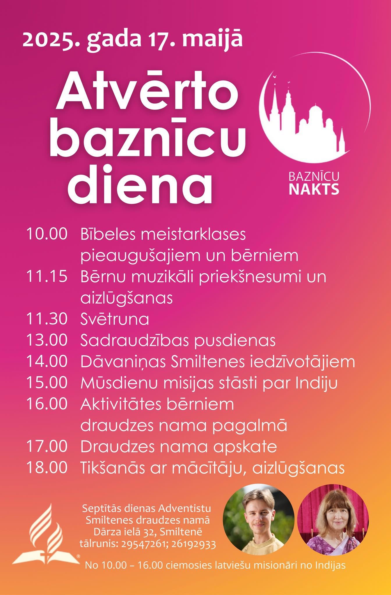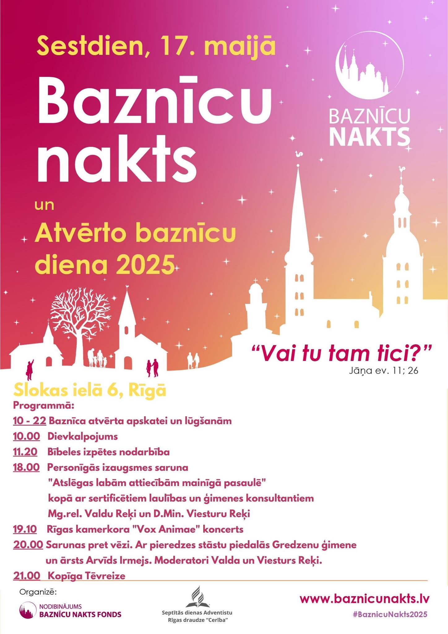 Arī šogad Baznīcu naktī un Atvērto baznīcu dienas ietvaros vairākas Septītās dienas adventistu draudzes ir sagatavojušas programmu ikvienam.