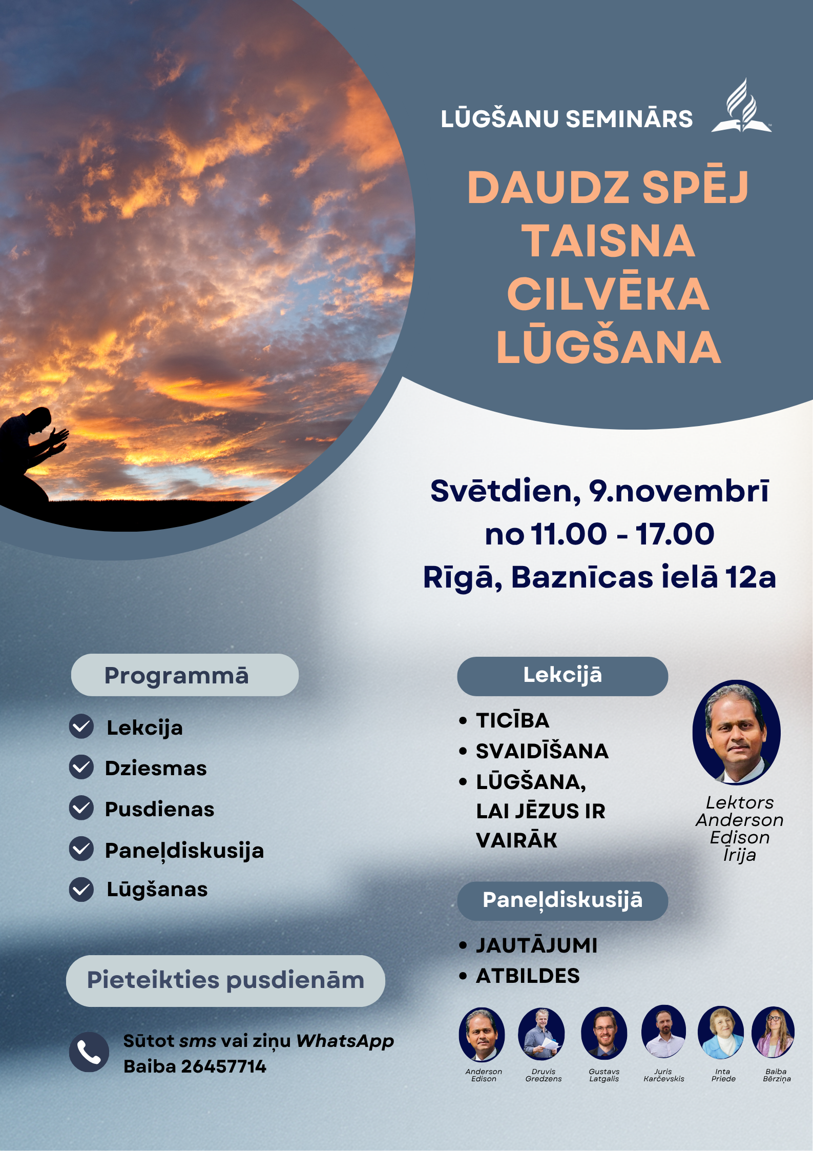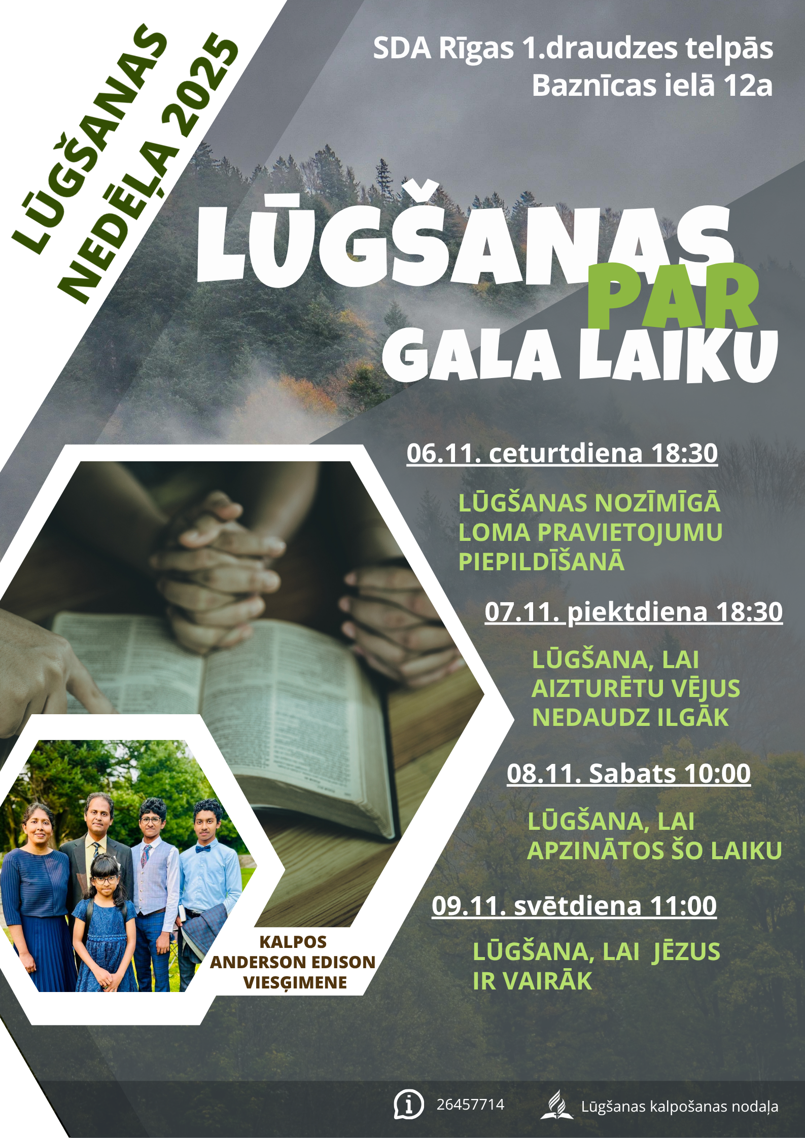 - 06.11. (ceturdiena, plkst. 18:30) – Lūgšanas nozīmīgā loma pravietojumu piepildīšanā