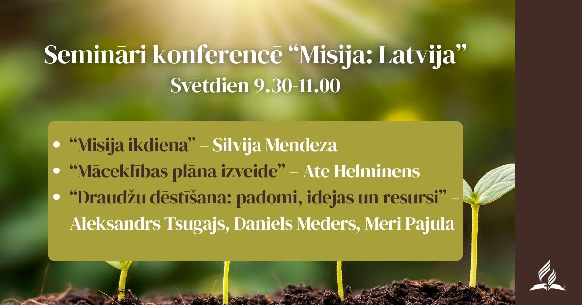 Semināri notiks svētdien, no plkst. 9.30 līdz 11.00.