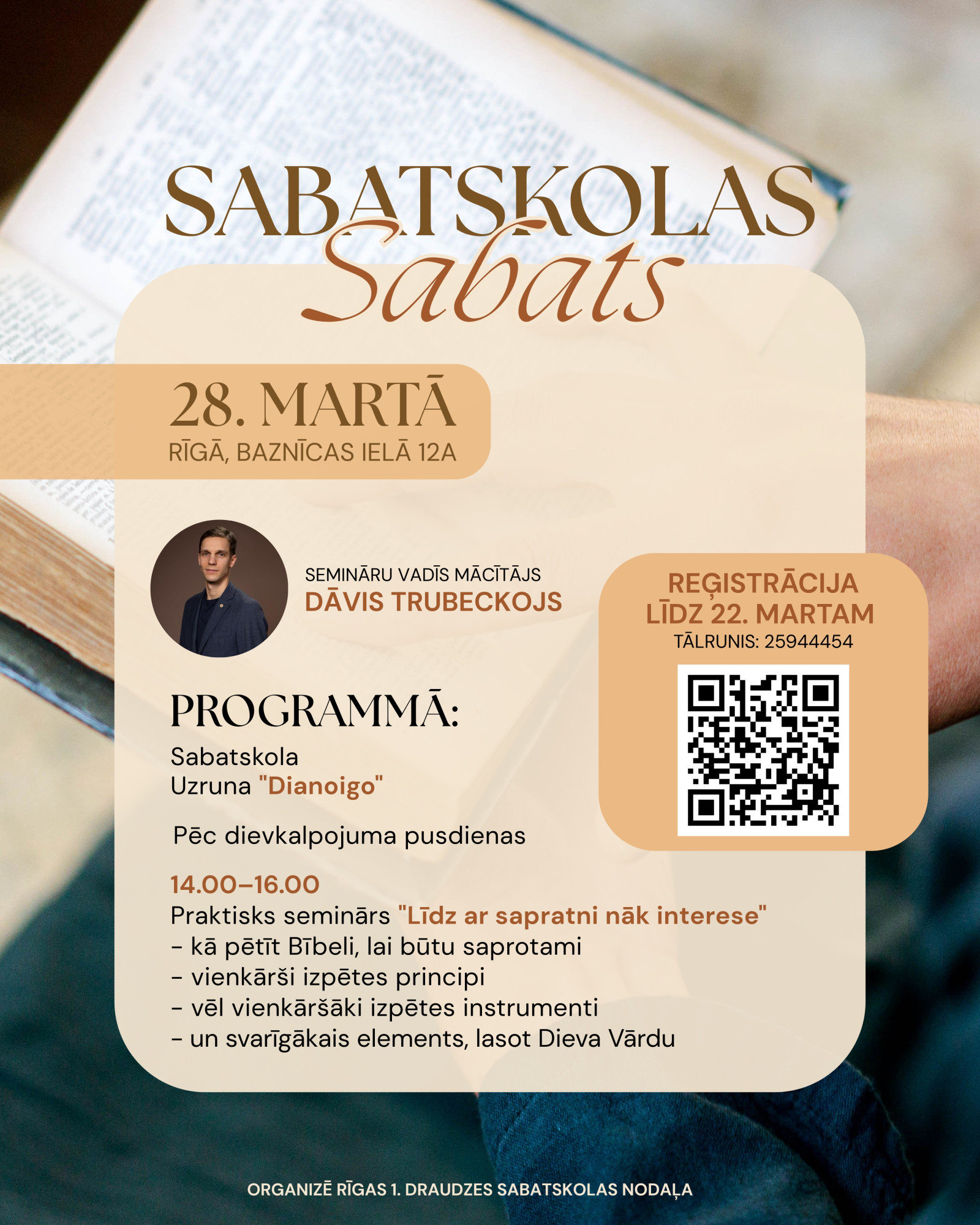 Organizē Rīgas 1. draudzes Sabatskolas kalpošanas nodaļa.