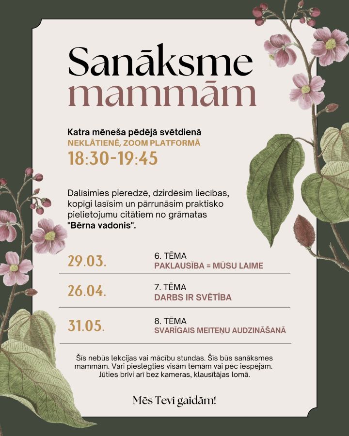 Esi mīļi gaidīta mammu sanāksmēs vēl trīs reizes šajā sezonā! Gan Tu, gan citas mammas, par kurām zini, ka šis varētu būt noderīgi.
