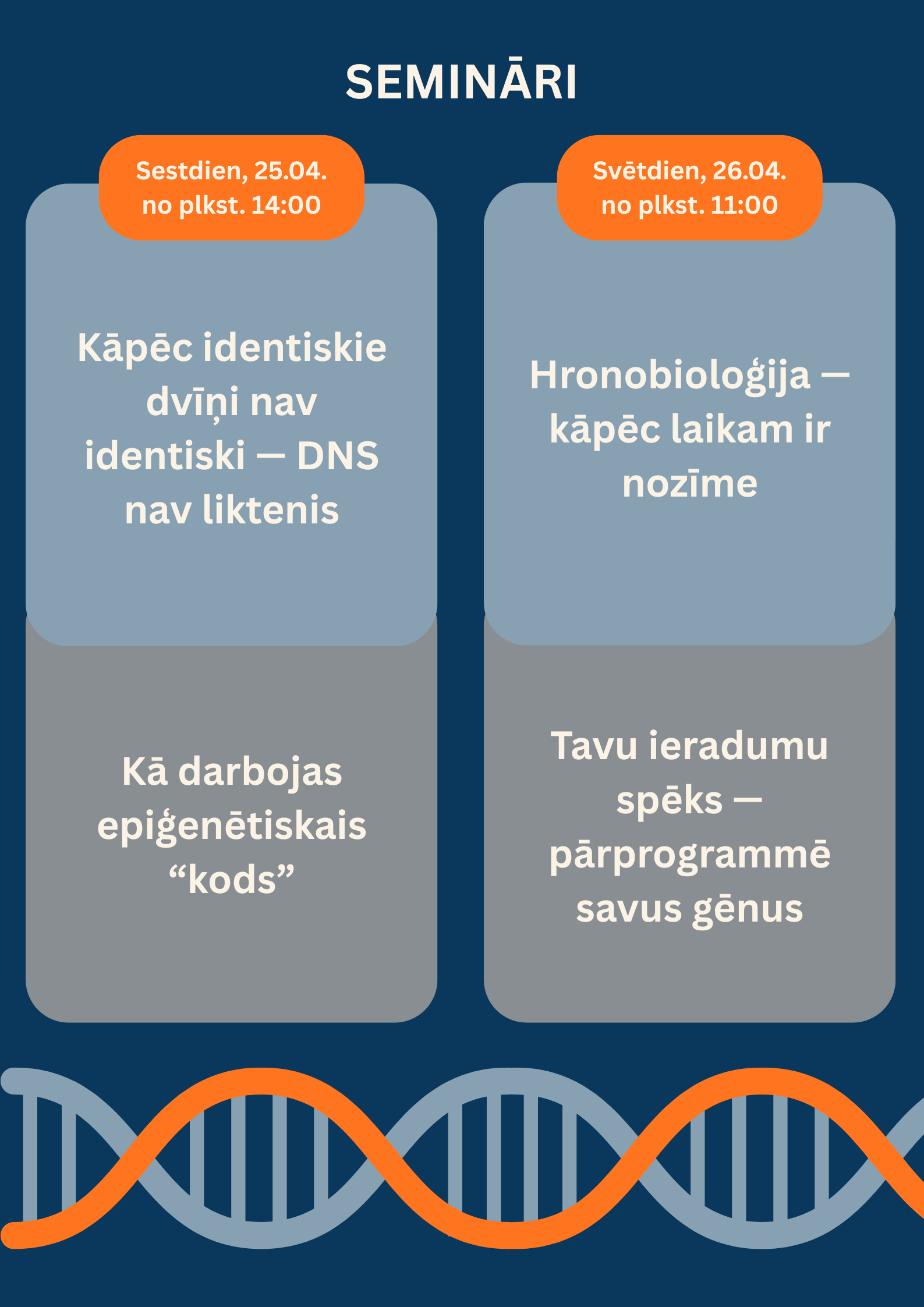 Šajos semināros kopā atklāsim mūsdienu zinātnes pārsteidzošās atziņas par cilvēka bioloģiju un gēnu darbību.