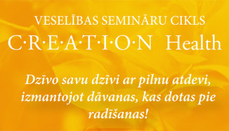 Piedalies veselības semināru ciklā "Creation Health" katru svētdienas pēcpusdienu no 8. līdz 29.oktobrim! “Creation Health” ir veselības atjaunošanas programma, ko 2016.gadā izstrādāja ārsti no ASV slimnīcas "Florida Hospital”.