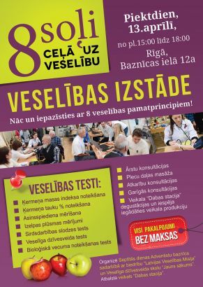 Организаторы: Церковь адвентистов Седьмого дня в сотрудничестве с обществом «Миссия здоровья Латвии» и с школой здорового образа жизни «Новое Начало».