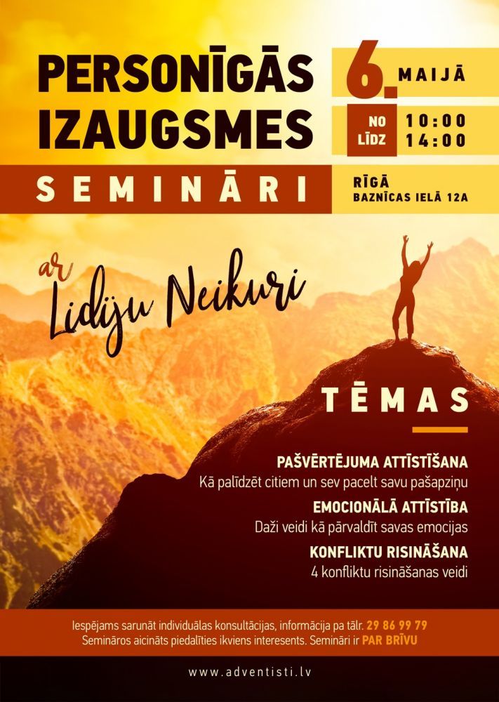 6 мая с 10:00 до 14:00 в Риге, на улице Базницас, 12, пройдёт мастер-класс по развитию личности с Лидией Нейкурс.